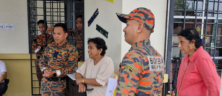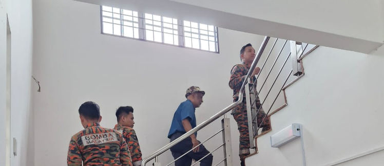 The Bomba officers were pleased with the placement and selection of our ABC and CO₂ fire extinguishers, and shared useful guidance on their use. They explained that ABC dry powder extinguishers release powder over a wider area, forming a cloud that spreads easily, unlike CO₂ extinguishers which are more targeted. They also encouraged those who have not used a fire extinguisher before to gain practical experience during training.